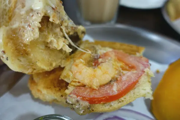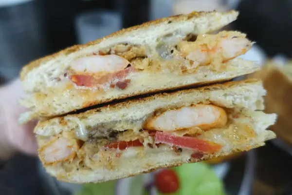 野菇鮮蝦三明治,給你完整的一隻蝦用料紮實,就怕你吃不夠,本日最推
