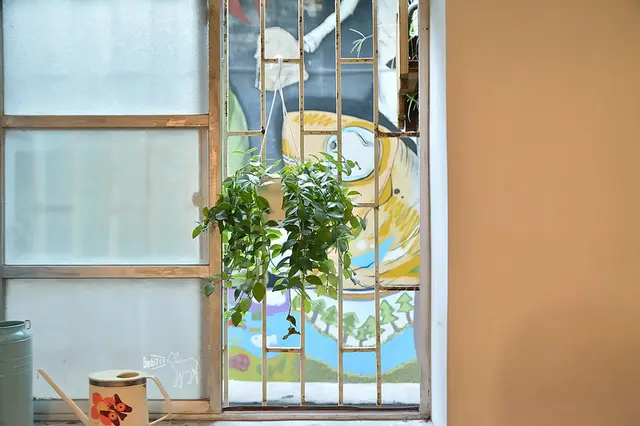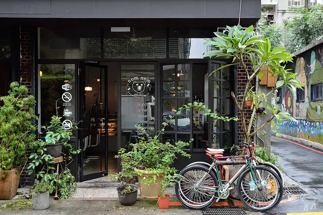店外滿滿的盆栽,還有旁邊巷弄牆面上的彩繪,讓Nom Nom咖啡館添加了一些可愛感。