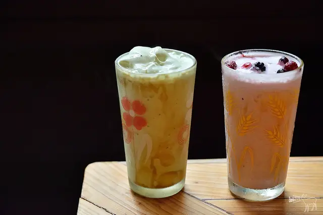 奶昔喝起來就像是用其口味對應的冰淇淋加上其他配料下去打製,抹茶冰淇淋加上焦糖漿下去打,口味很一般但又很甜,而白巧克力莓果因為有莓果的酸甜所以好一點點,不過也是中規中矩,但兩者的口感都很濃稠。
