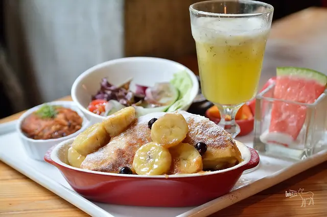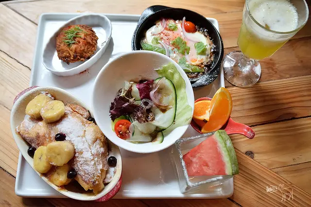 法式吐司看起來很可口,不過吃起來倒是很甜,讓嗜甜度沒這樣高的我們只好投降。
