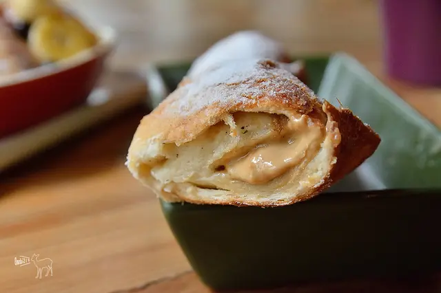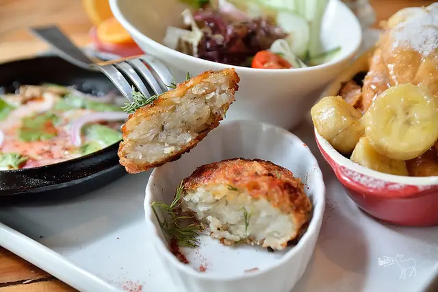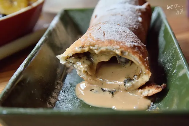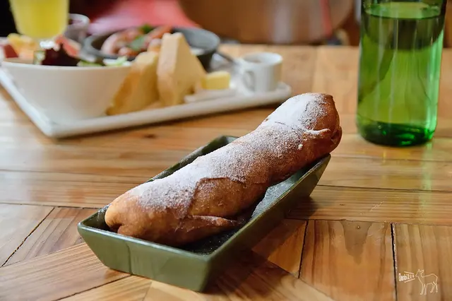 跟手臂差不多粗的炸多拿滋是我覺得當日比較喜歡的餐點,整條送上來時很驚人,雖然說口感滿硬的,但裡頭的芝麻與花生醬香氣濃郁。