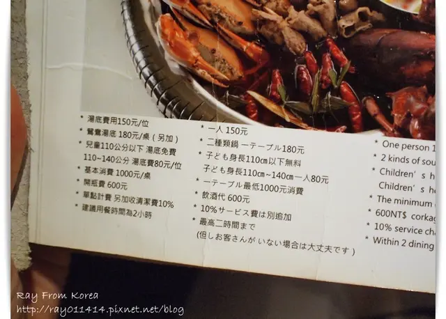 因為菜單實在拍的不是很好,就奉上簡單的鍋底收費