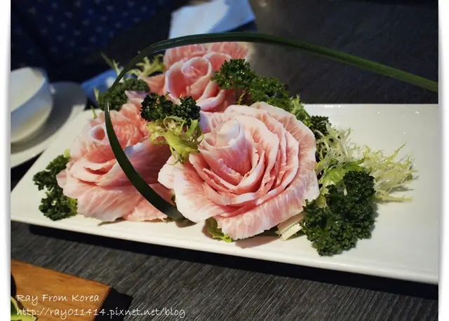 一共有三朵花,一朵花大概有10-12片左右,其實點一盤肉好像就差不多可以餵飽大家呢~