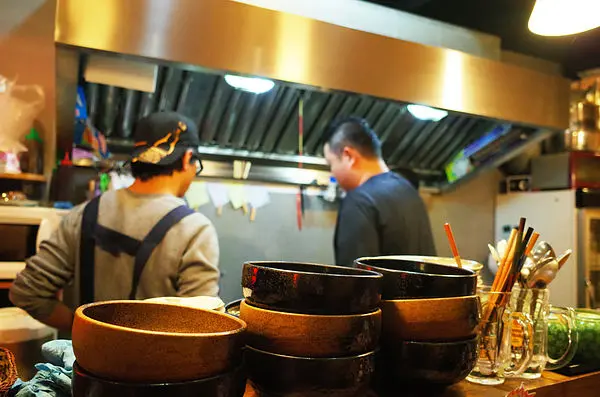 名古屋台所是開放式廚房,聽得到廚房熱炒或忙碌的聲音,缺點是有小油煙,優點是充滿香氣。