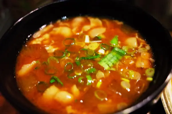 味噌湯的味道和拌麵的味噌不一樣,煮湯的赤味噌味道再清淡一點,白蘿蔔也有入味但比較不會那麼鹹。