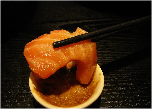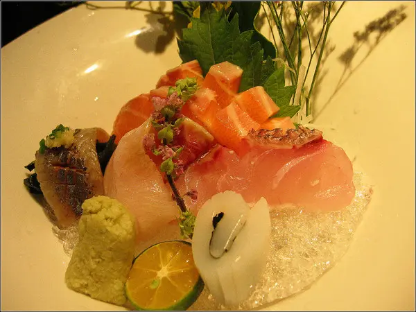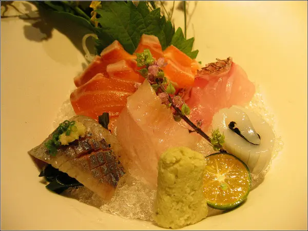 微嗆的哇沙米搭配甘甜沾醬、還多了淡淡紫蘇花香!!!  是生魚片提鮮解膩的好幫手。