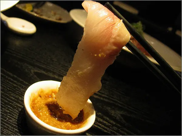 肉質細緻甘甜,有一些油脂,搭配酸酸的金桔滑嫩又順口,帶一點皮的膠質口感特別好吃!!