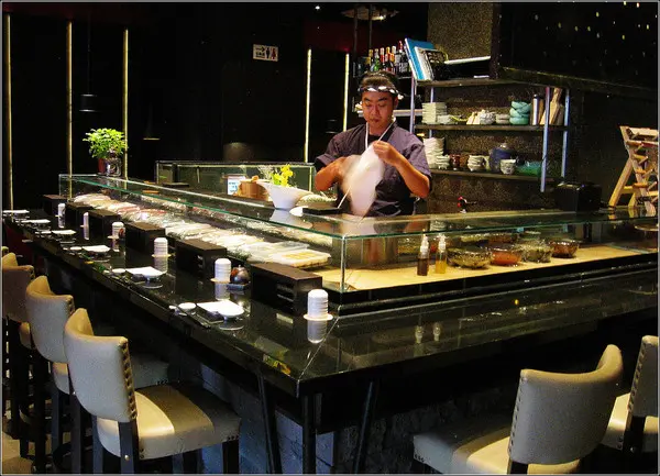 一進來就能看到霸氣的壽司吧檯,搭配黑曜的大理石檯面非常有質感~