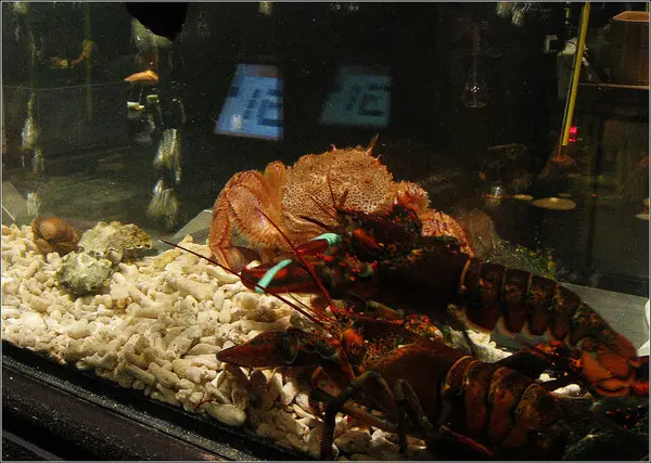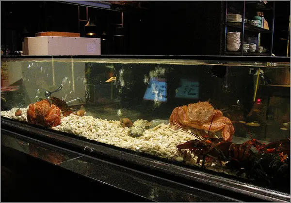 好多隻活跳跳的大龍蝦,日本毛蟹卻害羞的只肯背面示人 XD