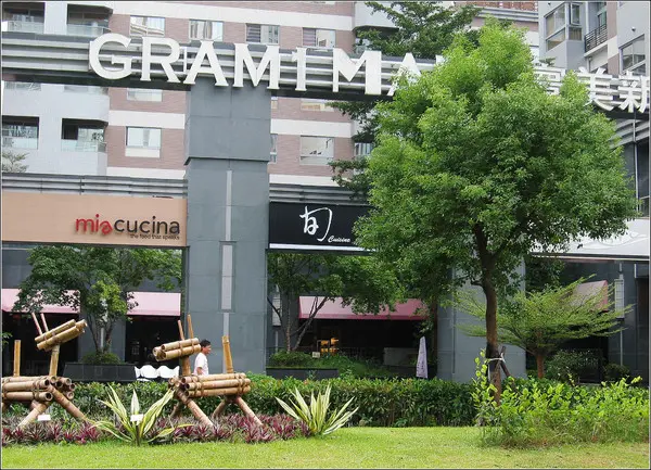 只要記著在天母SOGO正後方的花園裡,看到寰美新天母這幾個大字就對啦。