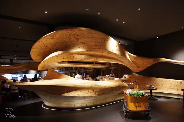 入門後見招牌「雲朵」吧檯, 有別於以往吧台的僵硬線條,用最原始的方式呈現, 不僅醒目,也實在太美了,令人忍不住駐足多看幾眼。