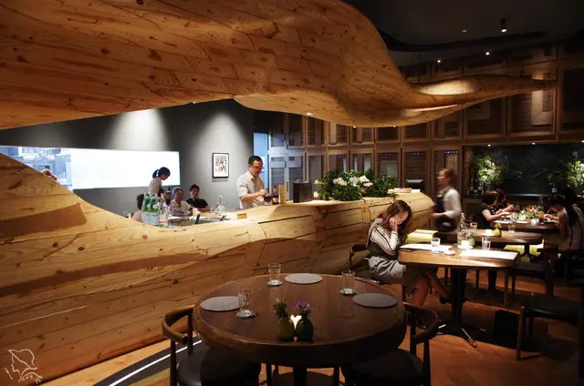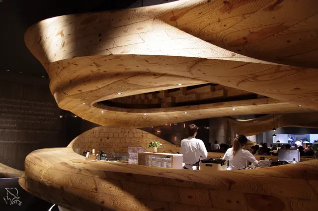 採用大量橡木打造的空間,線條流暢舒適, 偌大的空間座位數卻不多,為的就是確保用餐品質。