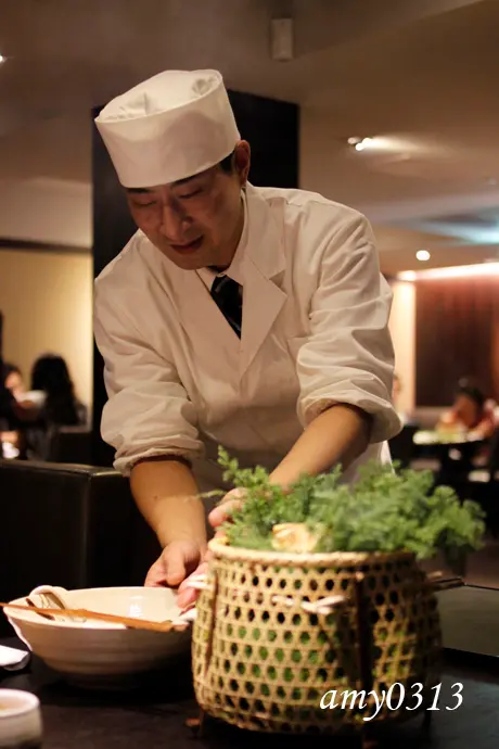 主廚又出場了,這回端上來的是帶著香氣與熱氣的燒物。