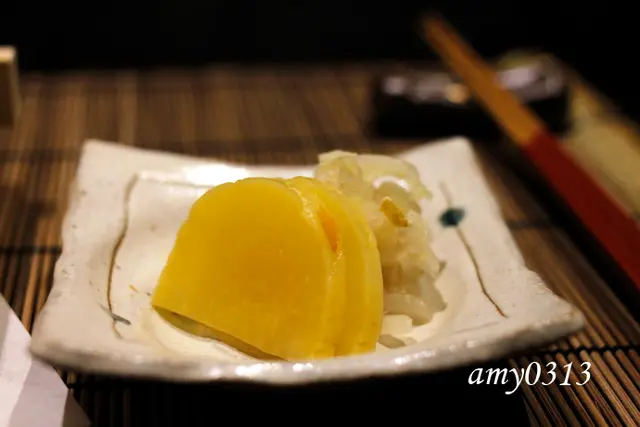 這個和牛壽喜燒的味道當然是不錯的,牛肉也很軟嫩,只不過坦白說amy在看到這鍋時小小楞了一下,心中不免嘆了口氣,即使是來自日本的老店,還是得為了顧全台灣人的喜好而有了些許更改,聽說因為很多顧客反應要有熱呼呼的食物才像有吃到東西,因此『燈燈庵』只好在套餐裡加入壽喜燒。