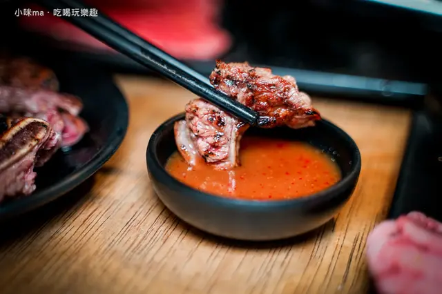 牛肋條一定要沾點燒肉殿的獨門沾醬,有嚼勁的滋味散發醬料的鹹香,也是棒的下酒菜