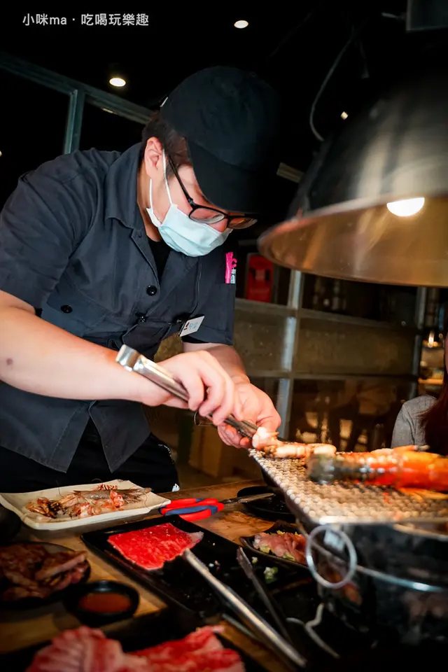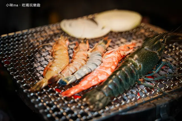 烤蝦子也是們學問,服務人員會過來幫忙,怎樣把蝦子烤到完整不乾柴還能保有肉汁,就看他們啦~
