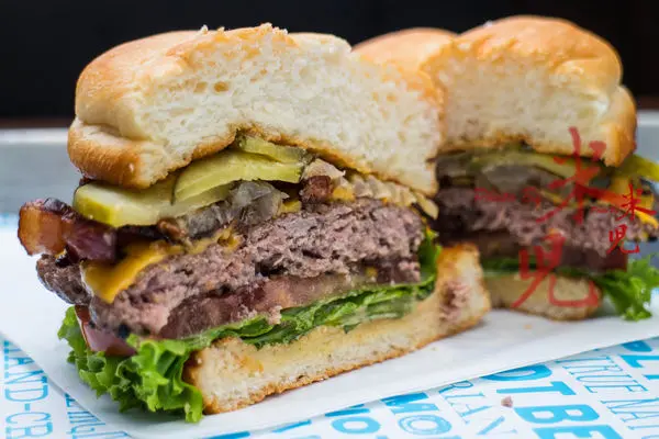 培根起司牛肉堡,205大洋,厚達2公分的牛肉搭配煎得香脆的核桃木煙燻培根、起司與酸黃瓜,大口咬下,滿足感百分百啊!