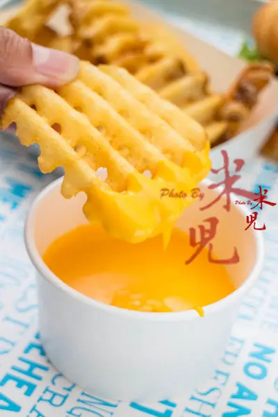 整顆馬鈴薯切成的薯格格沾香濃的起司醬,是米兒最喜歡的組合~~