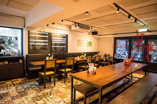 空間是原本的1 BITE 2 GO改的,但多了藍白元素與開放式廚房,可以看到廚師們工作的樣子喔。