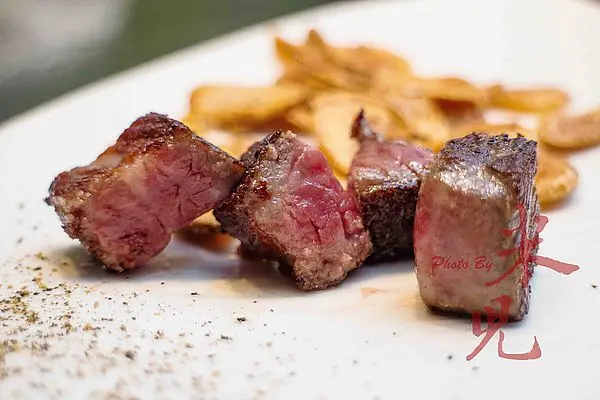 切小塊品嘗~~多汁~~可惜米兒還是覺得澳牛的甜度不足~~