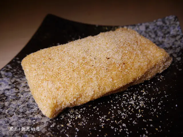 土司浸泡並吸飽牛奶後,烤至酥香再裹上花生粉與砂糖