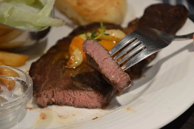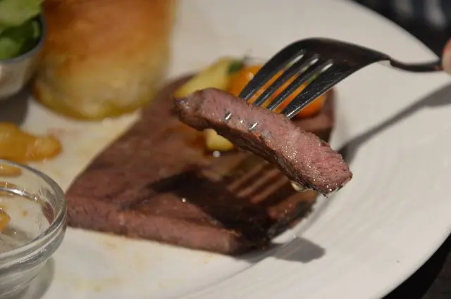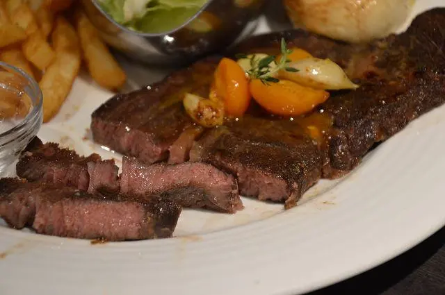 這道牛排的肉質較為紮實,少了些油花讓整體口感更為清爽,入口後一樣是鮮嫩多汁,美味一樣讓人無法抗拒。
