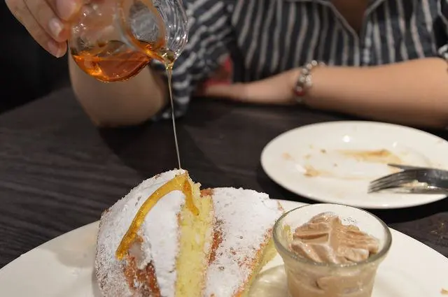 鬆餅也可以依喜好淋上蜂蜜,來增添濕潤度及甜香度。真不愧是瓦法奇朵的招牌甜點,鬆餅的美味讓我們回味無窮。