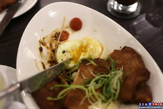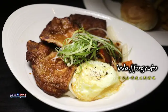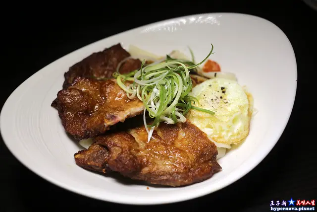 水波蛋與豬排、蔥花、刀削麵組成的西式中餐