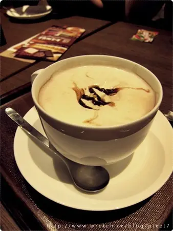 最後有點衝動的點了大杯的熱可可亞(125元),上島的茶杯很微妙,S和M之間尺寸幾近無差別,但L的個頭比起M又大的多,但每個尺寸間價錢不過相差10、20元而已,嗜甜如我自然應該點大杯的。