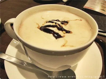上島的可可亞上還加了鮮奶油和核果、巧克力醬,原本擔心這樣的組合未免甜膩過頭,但實際品嚐過後發覺其實是能夠接受的程度(也可能是因為我本身對甜食喜好的緣故),溫熱的可可亞伴隨鮮奶油入口,只覺得十分滿足,而且杯子捧在手上的份量感更是讓人覺得幸福,果然選大杯是對的!