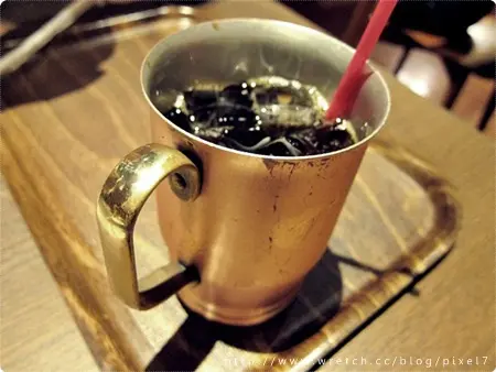 朋友的冰咖啡,金屬杯很有趣,據說酸味略重了點。