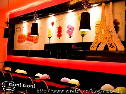 壁板的設計,也使用手繪風和巴黎鐵塔來象徵馬卡龍緣自於法國這個國家。