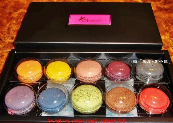 打開塑膠盒後就要開始來品嚐這10種不同口味的馬卡龍囉~