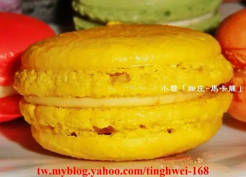 鮮黃色的「芒果茉莉馬卡龍」