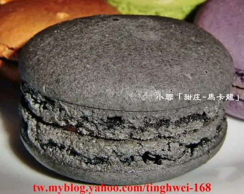 灰黑色的「焦糖海鹽馬卡龍」