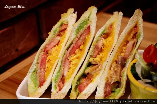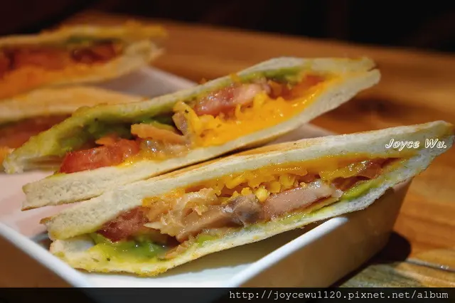 土司表皮烤至微酥 咬下時小心燙口 滿滿的配料滑入口中 香濃起司酪梨的清爽感 非常好吃呢