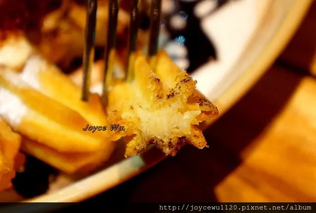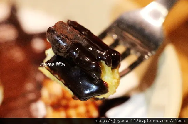 外皮焦酥脆接著接著是軟Q口感 咬下時塭暖的苦甜熔岩巧克力漿流出 香蕉的軟滑綜合了極濃巧克力的黏稠感