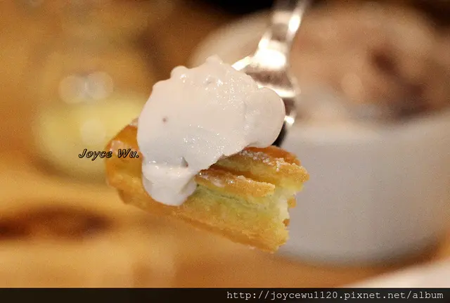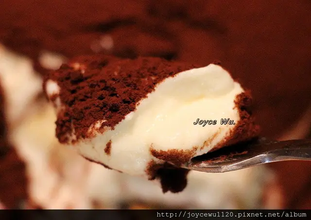 接著 單勺起一口上方馬斯卡邦的部份 也是提拉米蘇的精華所在