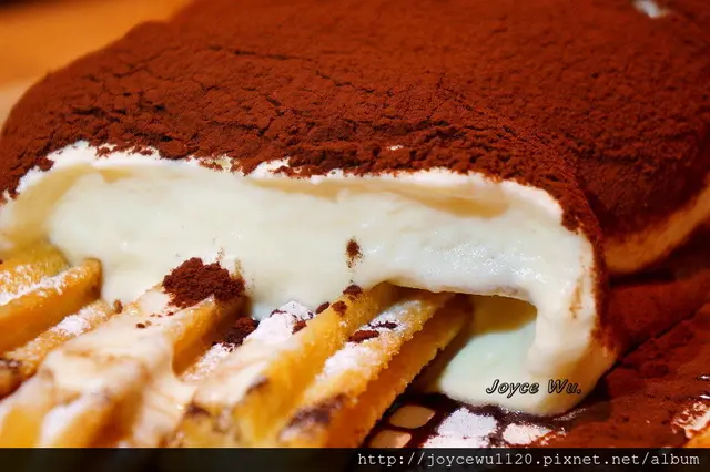 微微的苦甜滋味 想像一下把我們常吃到的義式提拉米蘇手指蛋糕的部份變成啾拿棒的概念