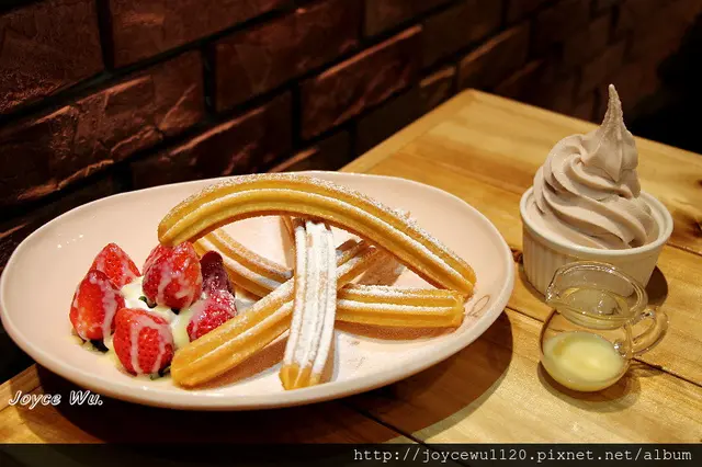 店內的甜點以各種口味的啾拿棒套餐為主,現點現擠現炸現做的啾拿棒套餐,裝飾的非常可愛,新鮮且香酥脆軟中有咬勁兒的口感無可挑剔,多口味的變化可以滿足大家口味上的需求,我們吃過的口味都非常滿意,推薦提拉米蘇啾拿棒套餐 . 焦糖蘋果啾拿棒套餐 . 草莓天堂啾拿棒套餐,希希自己的排名是焦糖蘋果>草莓天堂>提拉米蘇,搭配的牛奶霜淇淋和限定草莓霜淇淋也非常美味且友質感,除了啾拿棒甜點外,60.1%鈕扣巧克力三明治熔岩爆漿的口感讓人驚艷好吃呢。
