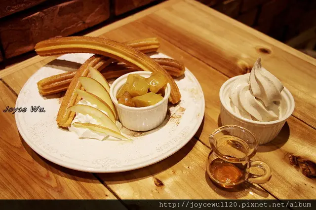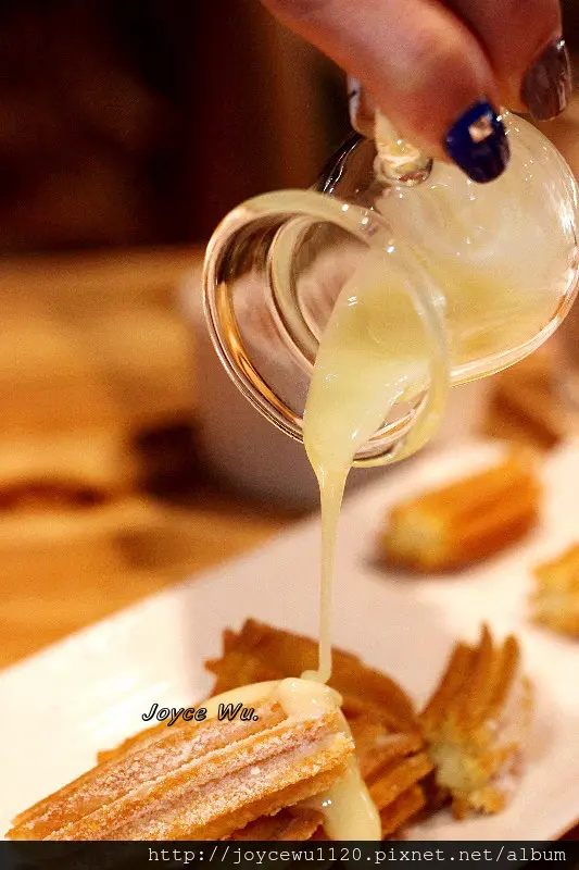 不做作的美式混撘Loft風格裝潢,黃光加上大量使用木元素,木桌.木椅.木地板.木牆...呈現溫暖柔和的氛圍,牆面上的有趣文字The Churro: A better stick than your boyfriend's更讓整間店輕鬆起來,約有35個座位,位子與位子間距小,稍有擁擠感覺,人多的時候容易被鄰桌的說話聲影響,兩次去店內大多是女性顧客,充滿歡樂的談笑聲,平日下午時間幾乎滿座,大約17:00後人潮開始漸漸散去,假日則是需要排隊,適合和朋友輕鬆聚會的好所在,如果是需要安靜或是隱密空間的人可能要再評估考慮看看。