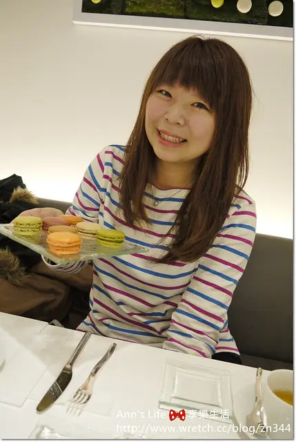 我們還來不及反應,她已經挑好三塊蛋糕和三顆馬卡龍,