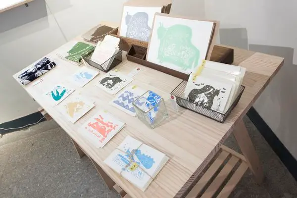 窩在展區邊緣,店裡喧雜聲響或多或少被這木櫃隔開,