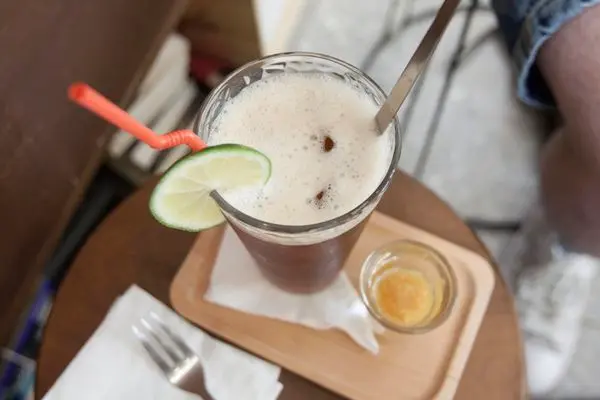 糖漿額外擺上,方便顧客自行調配,茶帶著些許剛煮熟後的米香,