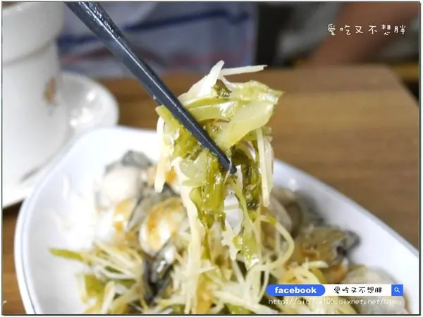 蚵仔底下鋪滿了酸菜,搭配著蚵仔一起吃味道更讚!