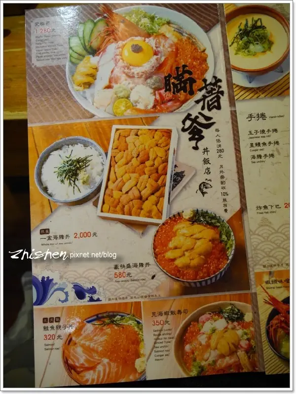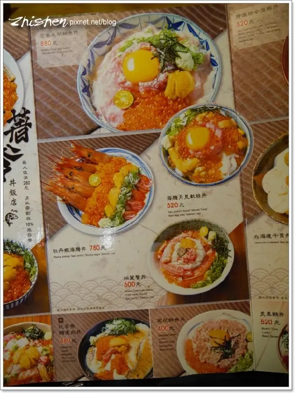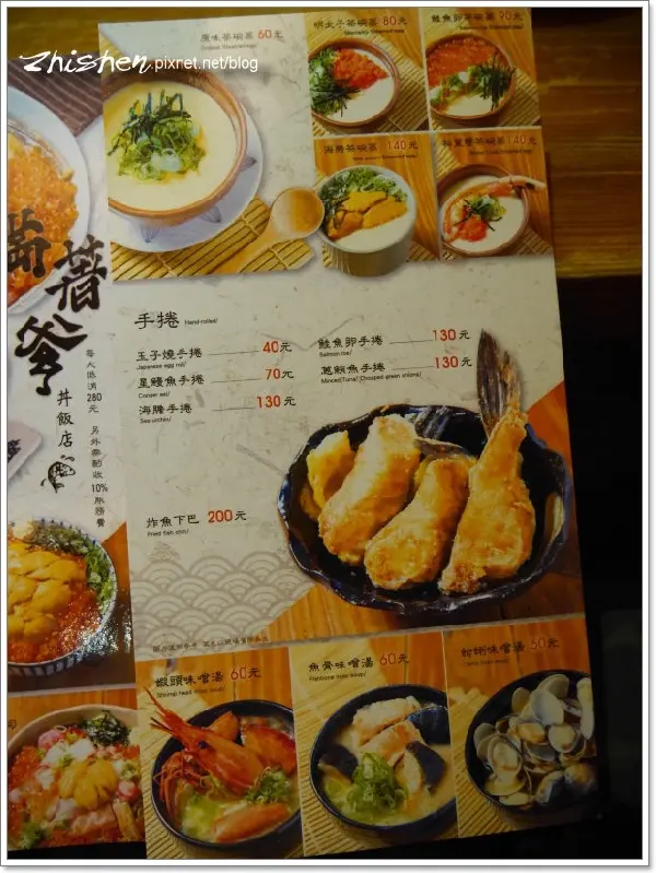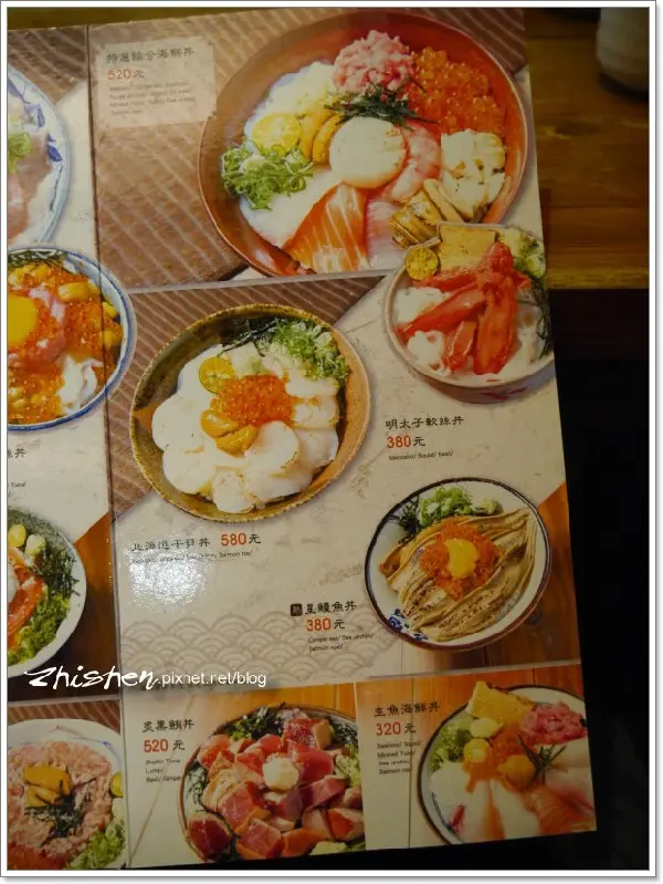 新的菜單圖文並茂,雖然魯覺得以前用正楷字寫的MENU比較有日式的FU,不過有實體圖片可看,的確是可以讓客人更了解丼飯原始呈現樣貌,看太久可是會流口水的Orz