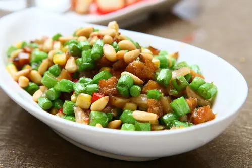 粒粒爽,是用許多食材切小丁,像四季豆、豬肉、筍子、松子等等一起去炒出來的,吃起來還真是粒粒清爽啊!