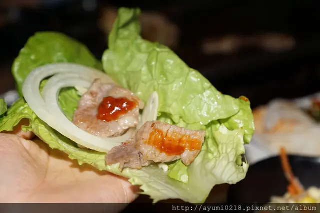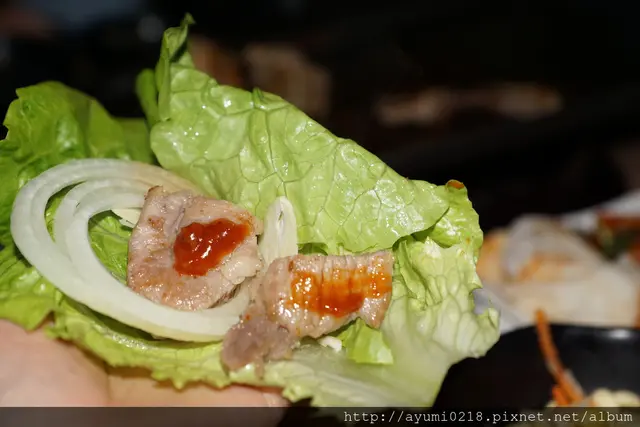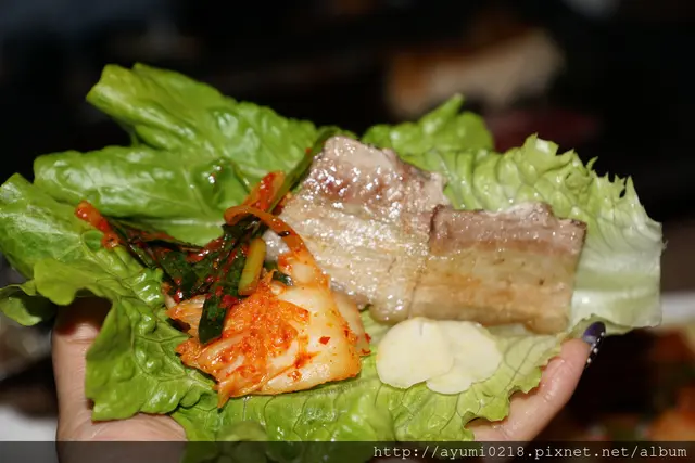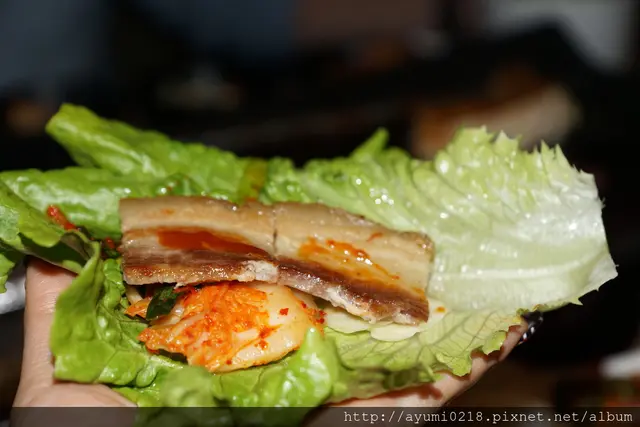 豬五花一但被生菜與泡菜給包裹住~一切就變的可口多了