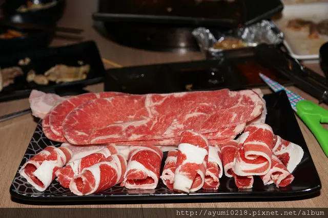 也別於一般銅盤烤肉的鐵盤..這裡是較厚的烤盤~有特殊的斜角設計~讓烤過的油脂可以順流而下的流到鋁箔中