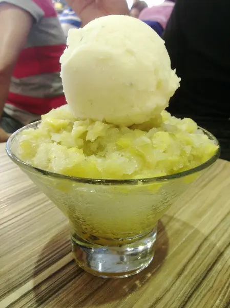 底層則是類似剉冰加上情人果也是偏酸的口味 所以不愛吃酸的人不太建議點這樣冰品而在最底層我們竟然吃到了很像芒果口味的醬汁耶